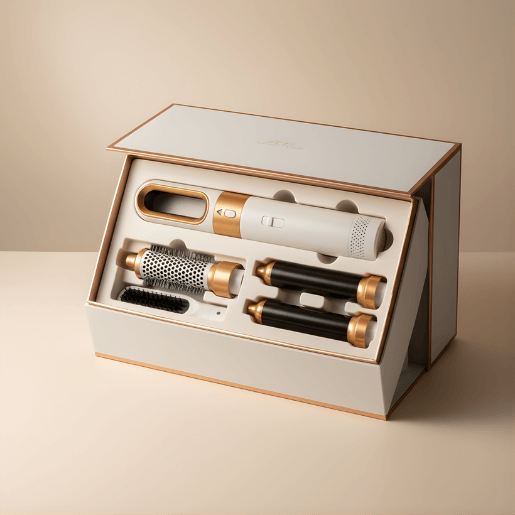A differenza di piastre e ferri tradizionali, questo styler utilizza un flusso di aria calda controllata per asciugare e modellare i capelli nello stesso momento.