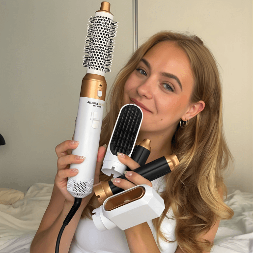 Grazie agli accessori intercambiabili, puoi passare dall’asciugatura alla lisciatura, dal volume alle onde morbide, utilizzando un unico dispositivo.